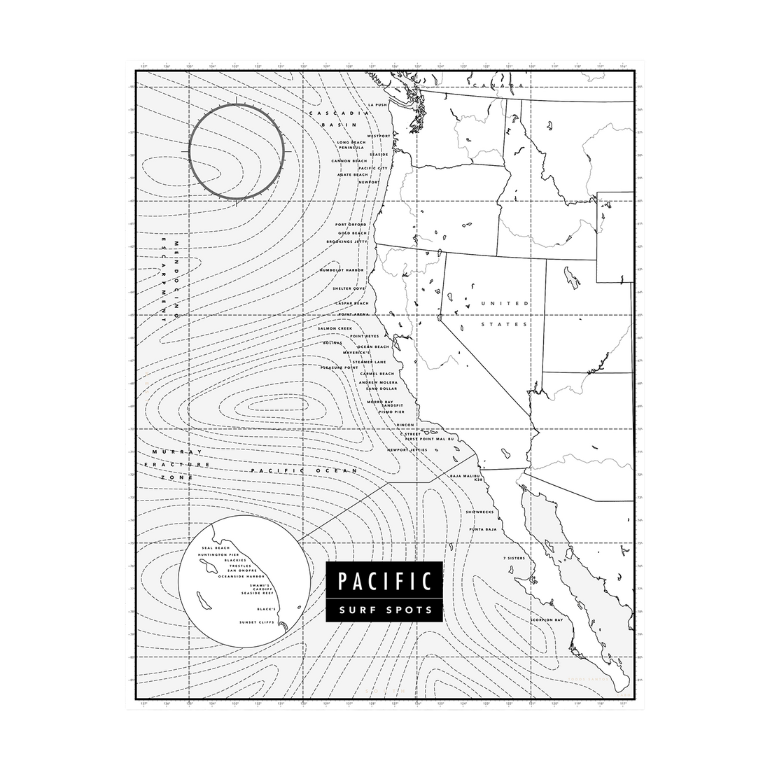 Pacific Surf Spots | Poster (B/W)