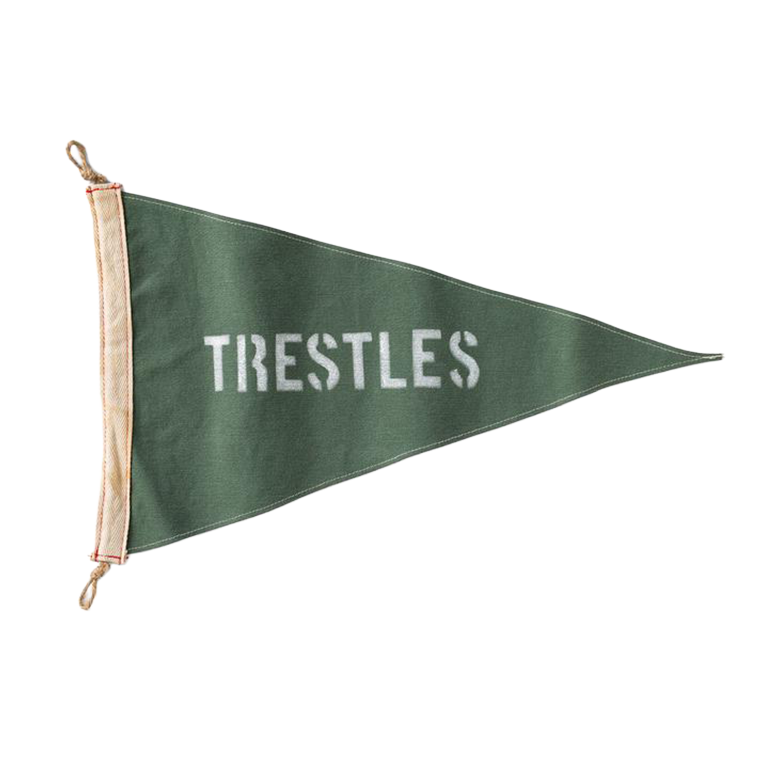 This hand-made flag uses army green canvas and hand stenciled off-white lettering. Each flag is topped with a natural twine + twill tape and stamped with Slightly Choppy branding.